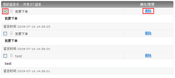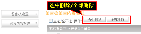 单独删除——选要删除留言前的“勾选框”,然后点击删除就可以删除留言。批量删除——勾选多个留言,点击上面的“选中删除”可以进行批量删除。