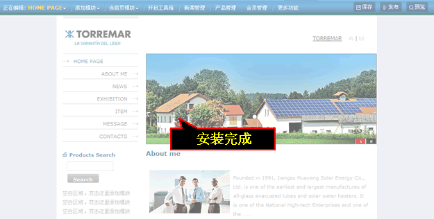 第一次用建站宝盒,填写完基本资料后可直接安装模板